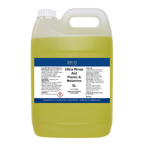 Zexa Ultra Rinse Aid Plastic is a liquid concentrate formulated for all types of automatic feed commercial dishwashers ideal for plastic items.